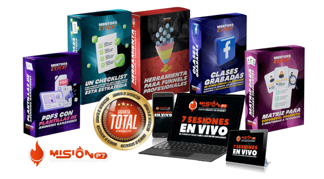 Con este paquete recibirás 3 Programas: Misión P7 el programa que te permitirá crear tu propio infonegocio y con ello podrás ganar entre $200 a $500 dólares cada semana gracias a la estrategia que aprenderás en los 7 días EN VIVO.